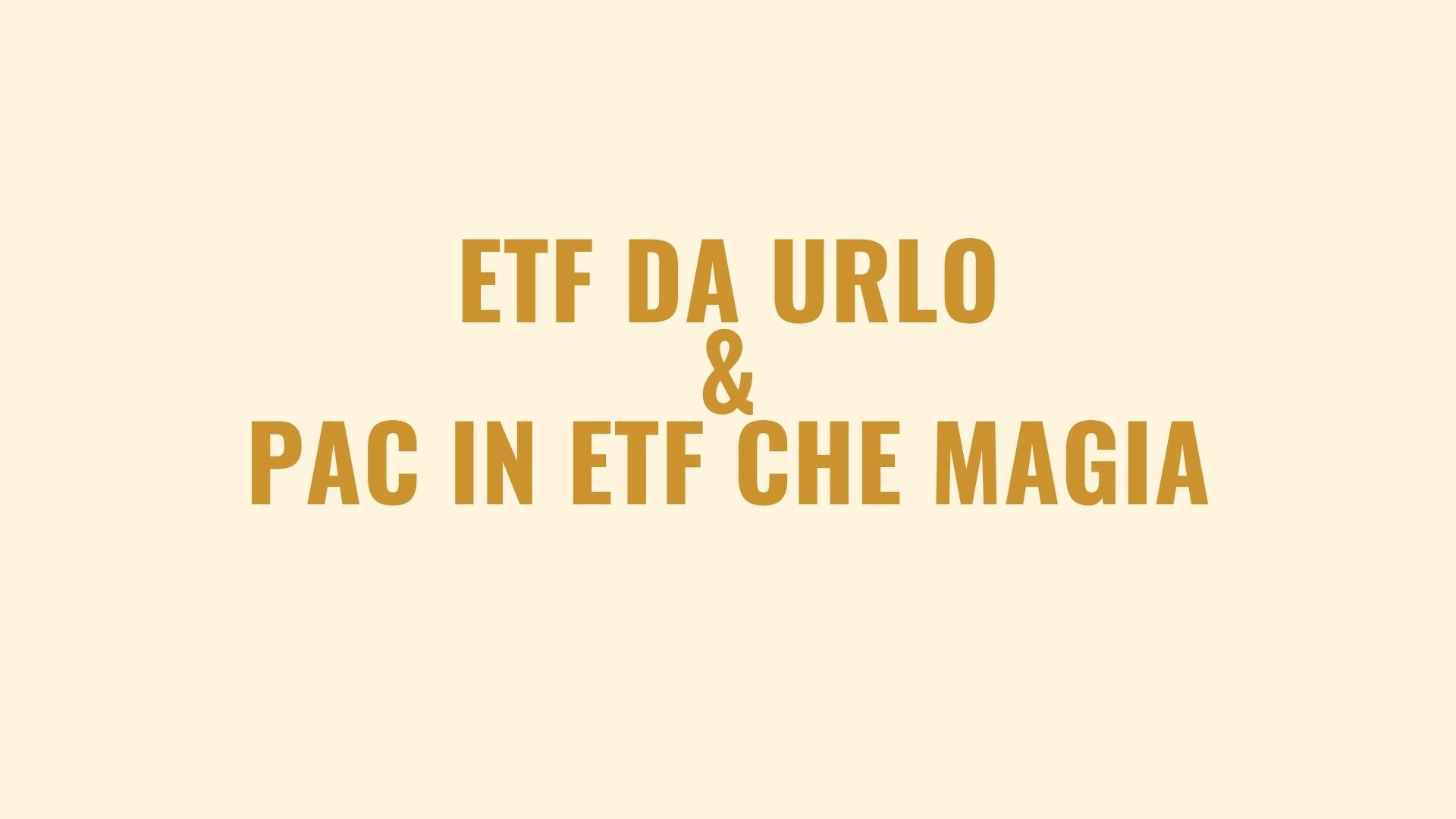 Percorso ETF DA URLO + PAC IN ETF CHE MAGIA